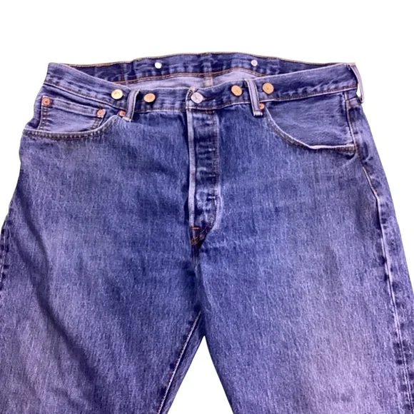 Y2K Levi’s 501 button fly straight leg denim. High-quality. Tagged as a 38x30 measures more as a 38 x 29. Laying flat: 19 inches across the waist, 21 inches across the hips, 20 inch inseam, 8 inch ankle opening. Medium wash. No rips or tears. Smoke and pet free home.312.
