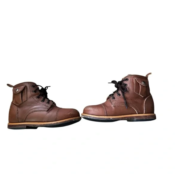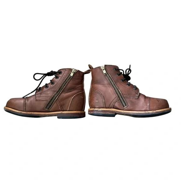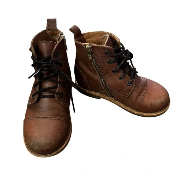 PLAY CONDITION for lots of wear/scuffs, see above pics Our Heirloom Classic Children Leather Boots are crafted from the best materials and highest workmanship. Designed to last beyond the three-week fashion industry's cycle, slow fashion at its best. Go ahead, zoom in, and check how with full-grain leather you are getting the real deal, beautifully imperfect!FeaturesFull-grain leather. Pull tab for easy on easy off. Side pocket to collect treasures. Memory gel insoles. Stitched vegetable-tanned leather soles. Rubber slip guard. Artisan Handcrafted.