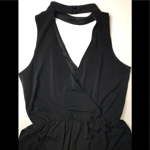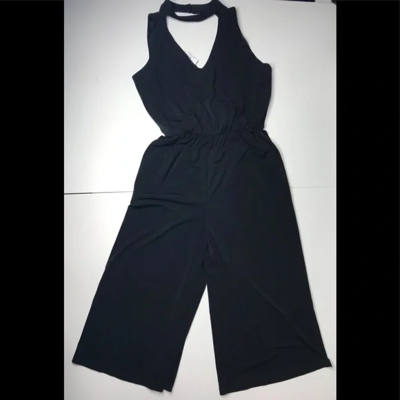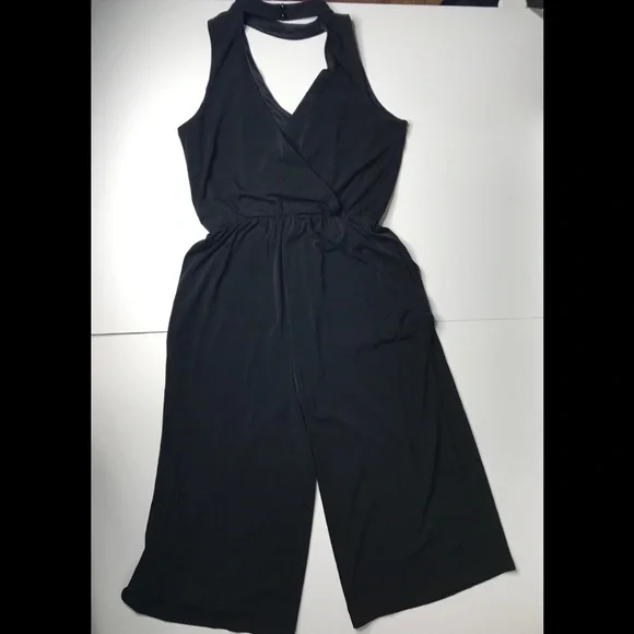 Breathless stretchy black capri romper choker neckMedium LinedElastic waistV neck Button loop choker neck closerCross cross v open backWide legGorgeous casual or dress up with jewelry See photos for measurements New to PoshMark? Create an account and use my referral code SugaShadsShop for a site wide PoshMark credit!Z01098