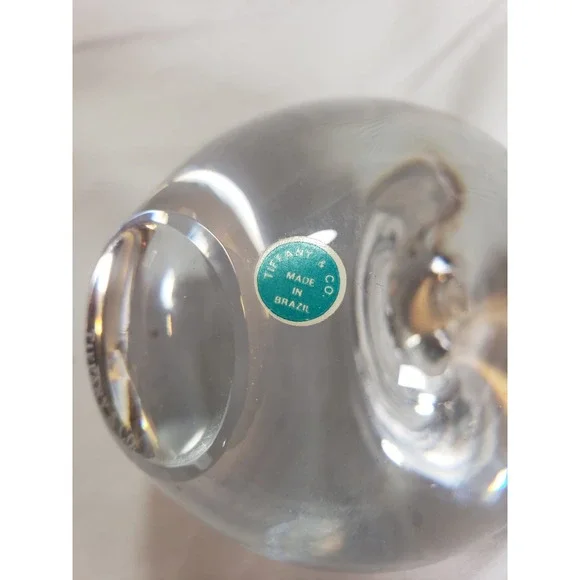 Vintage Tiffany & Co Apple PaperweightThis is a genuine Tiffany crystal apple paperweight or decor. It has a Tiffany sticker and is also has "Tiffany & Co" etched on the bottom. Solid lead crystal from circa 1990's.Measures approximately 3.5" high 3" wideand 9.5" in circumference.Excellent condition, with no chips, cracks or scratches. See photos for details.
